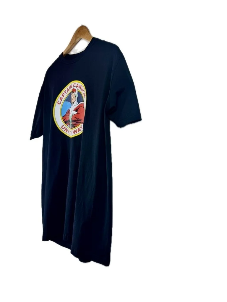 United Way WRC’s “Captain Canuck” T-Shirt. The United Way WRC supports 80+ local charities and community non-profit groups by fundraising through events, individual and corporate contributions. Every dollar received is allocated to various social needs groups in our community. Find out more at https://www.uwaywrc.ca/. Screen printed by Civilian on Gildan Softstyle,